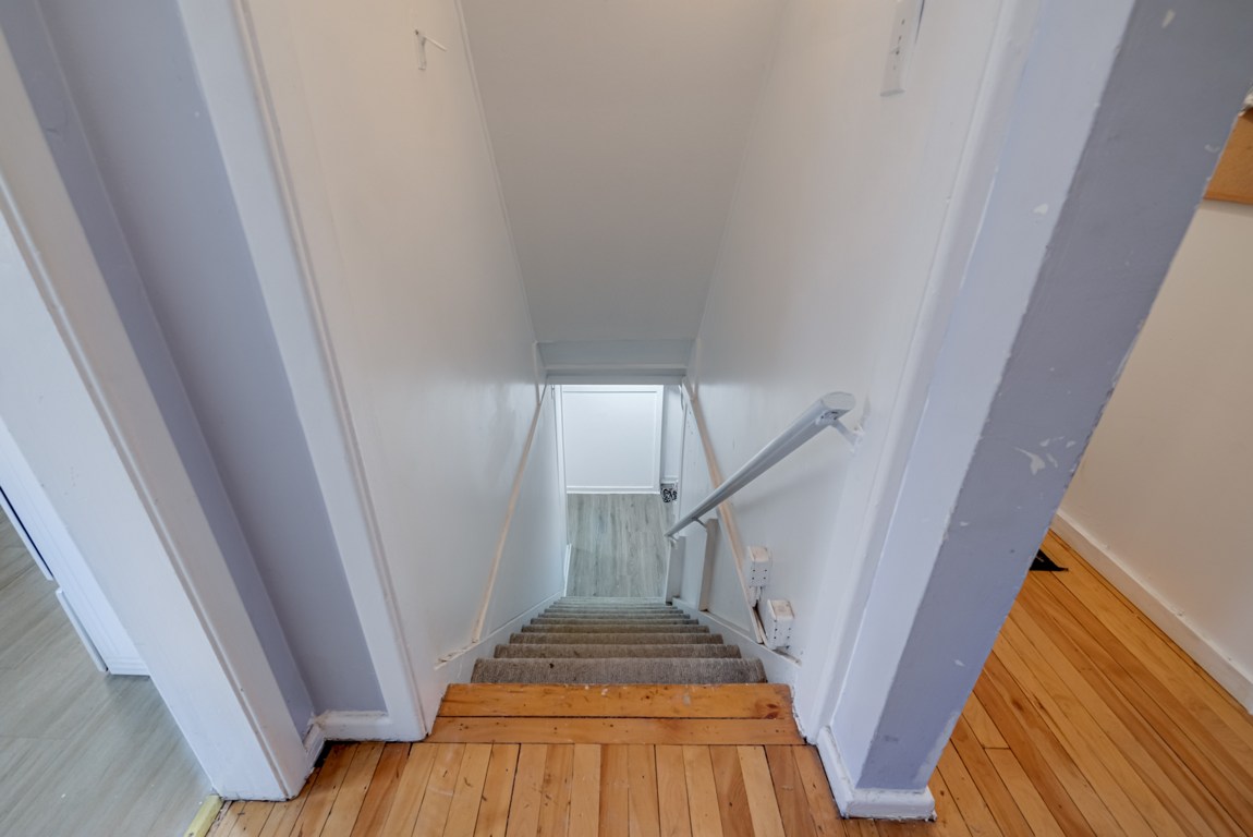 Carpeted Stairs To Lower Level Includes Railing